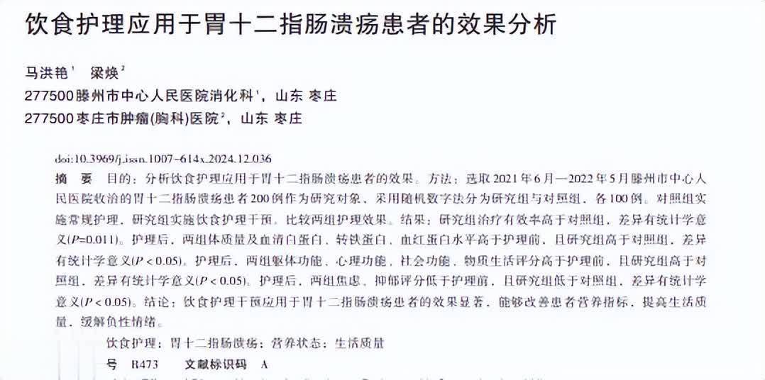 参考资料:[1]马洪艳容新策略,梁焕,饮食护理应用于胃十二指肠溃疡患者的效果分析,中国社区医师,2024-04-30