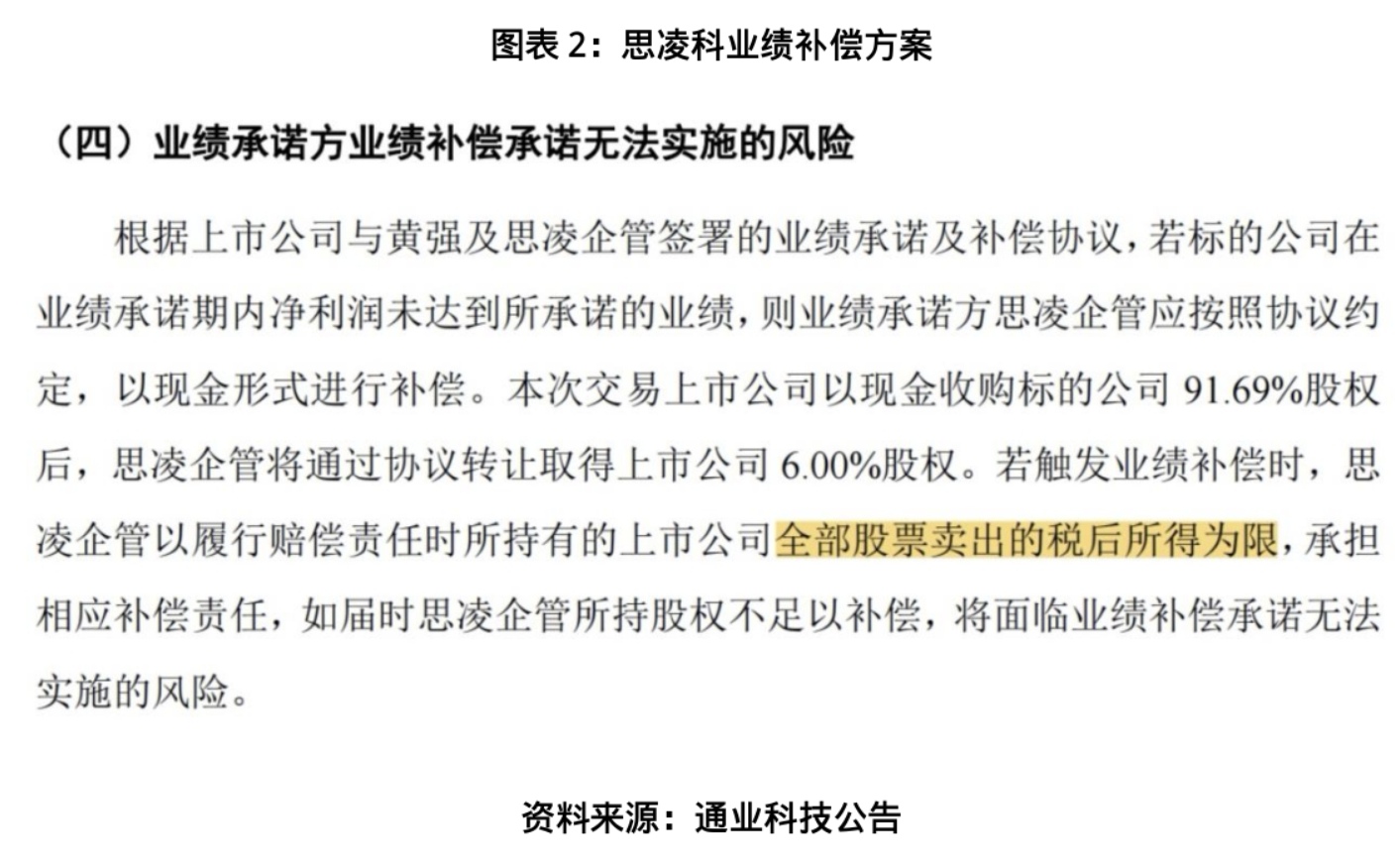 需特别注意的是,本次并购的业绩补偿机制颇为特殊。本次交易的业绩补偿方案设置了明确上限,即补偿金额以业绩承诺方所持上市公司6%股份的变现所得为限。若未来思凌科业绩不达标,且通业科技股价出现下跌,业绩承诺方的实际补偿能力将大幅削弱。极端情形下,若上述股权的变现价值不足以覆盖应补偿金额,该补偿机制不仅无法对冲并购风险,反而会因“业绩不达标→股价下跌→补偿能力下降”的负向共振效应持续放大损失规模,届时通业科技及其中小股东的利益都将遭受损失。